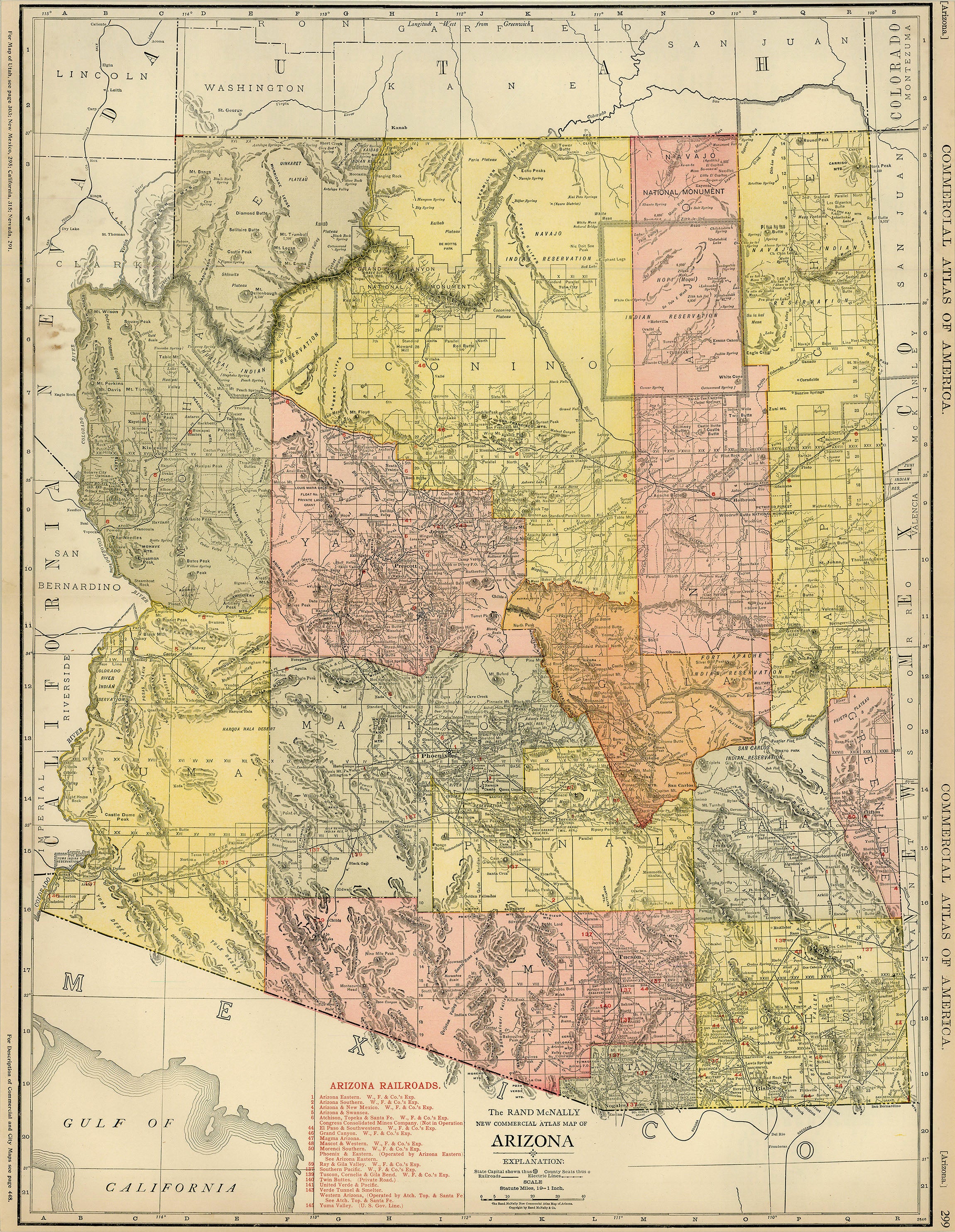 New Commercial Atlas Map of Arizona: Rand, McNally & Co. 1918