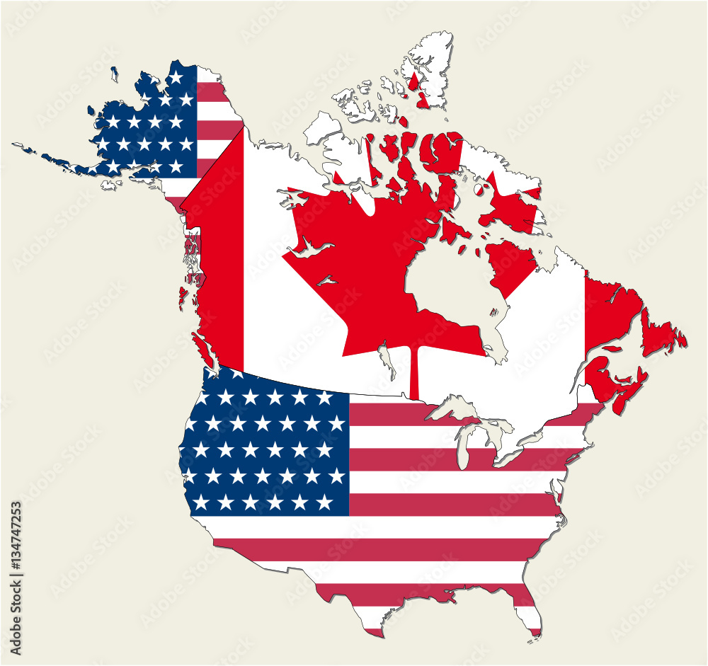 Map of the states of canada and usa represented as flag Stock